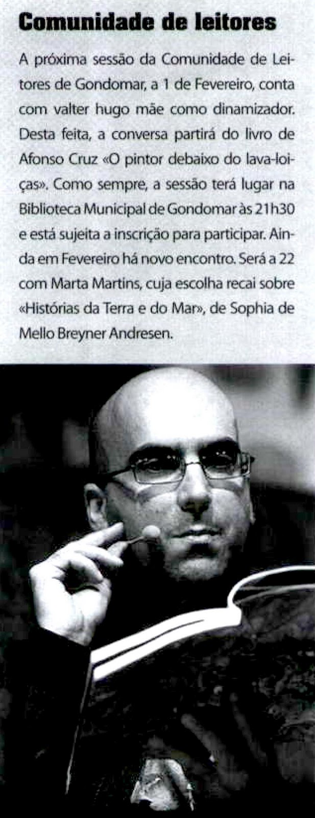 Valter Hugo Mãe na próxima sessão da Comunidade de Leitores de Gondomar